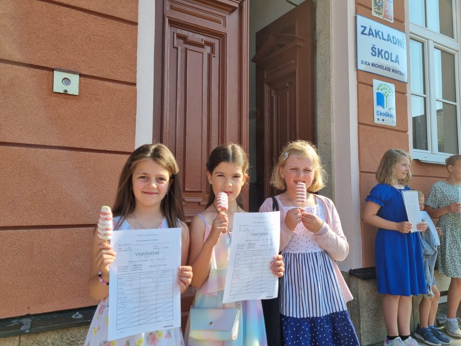 Ke konci školního roku patří nejen vysvědčení, ale také kytice a dárečky pro paní učitelky a třeba i zmrzlina za odměnu.
