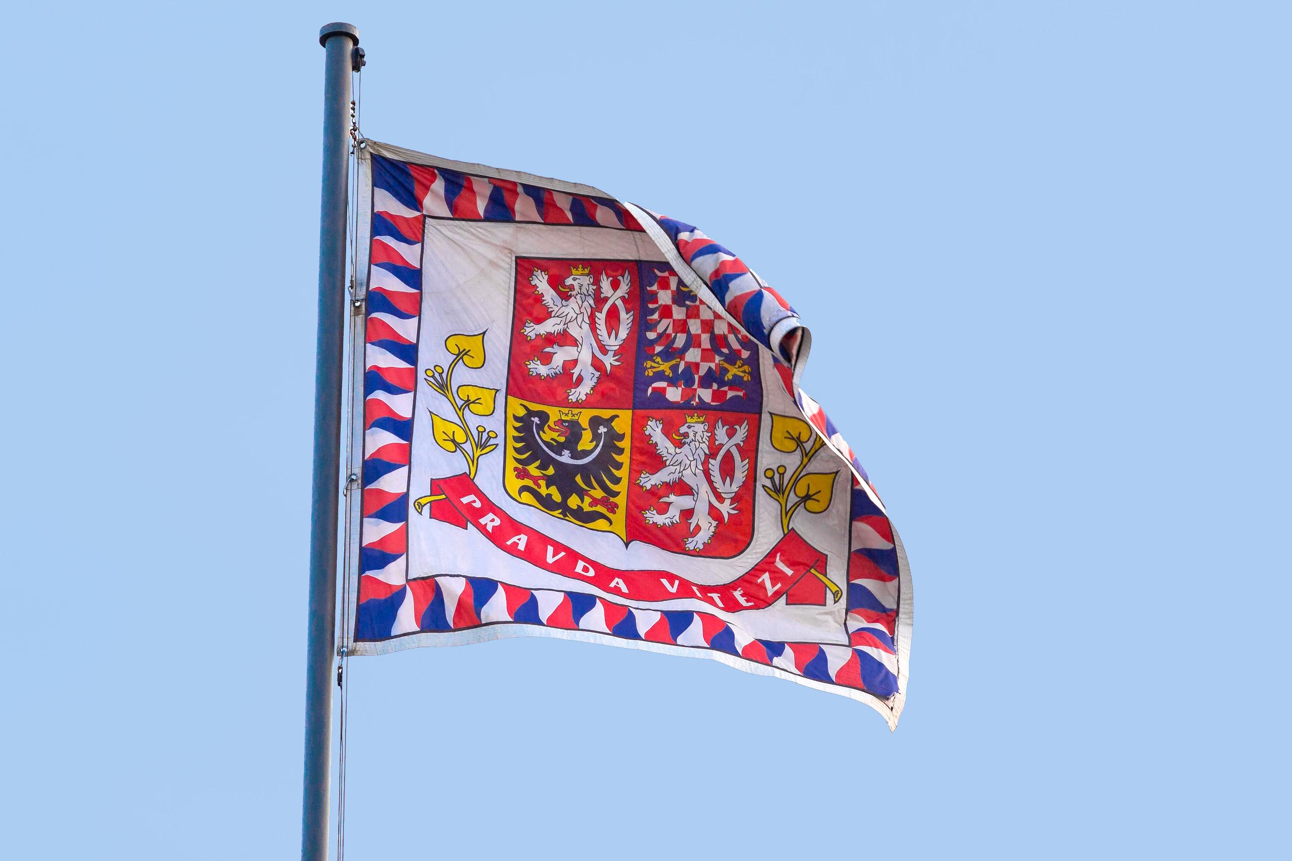 Vlajka prezidenta České republiky s nápisem Pravda vítězí | Foto: Tomáš Černý, ČTK